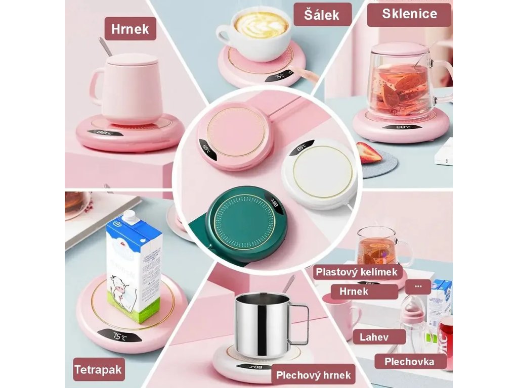 Inteligentný elektrický ohrievač hrnčeka je navrhnutý tak, aby udržal vaše nápoje na ideálnej teplote. Využíva elektrinu na zabezpečenie pohodlného a efektívneho ohrevu. Vyberte si ideálnu teplotu pre svoj nápoj! Či už preferujete horúcu šálku kávy alebo teplú šálku čaju, tento ohrievač hrnčeka je pre vás ideálny. Ohrievač hrnčeka je napájaný USB portom, a preto je kompatibilný s rôznymi zariadeniami, ako sú notebooky, powerbanky a USB adaptéry. Môžete si tak vychutnať teplý nápoj kdekoľvek.