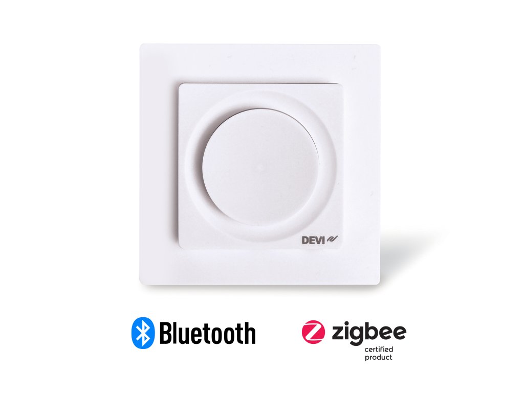 DEVIreg Display Connect je intuitívny programovateľný termostat s časovačom s možnosťou pripojenia cez Bluetooth aj Zigbee pre kombinovanú reguláciu teploty v miestnosti alebo podlahy, ktorý spĺňa normu Eco design Lot 20 a používa sa na ovládanie elektrických podlahových vykurovacích telies. Termostat je určený iba na pevnú inštaláciu. Vďaka špeciálne navrhnutej dvojdielnej konštrukcii je vhodný pre širokú škálu rámov. Termostat je vybavený otočným ovládačom a displejom, ktoré umožňujú intuitívne ovládanie.